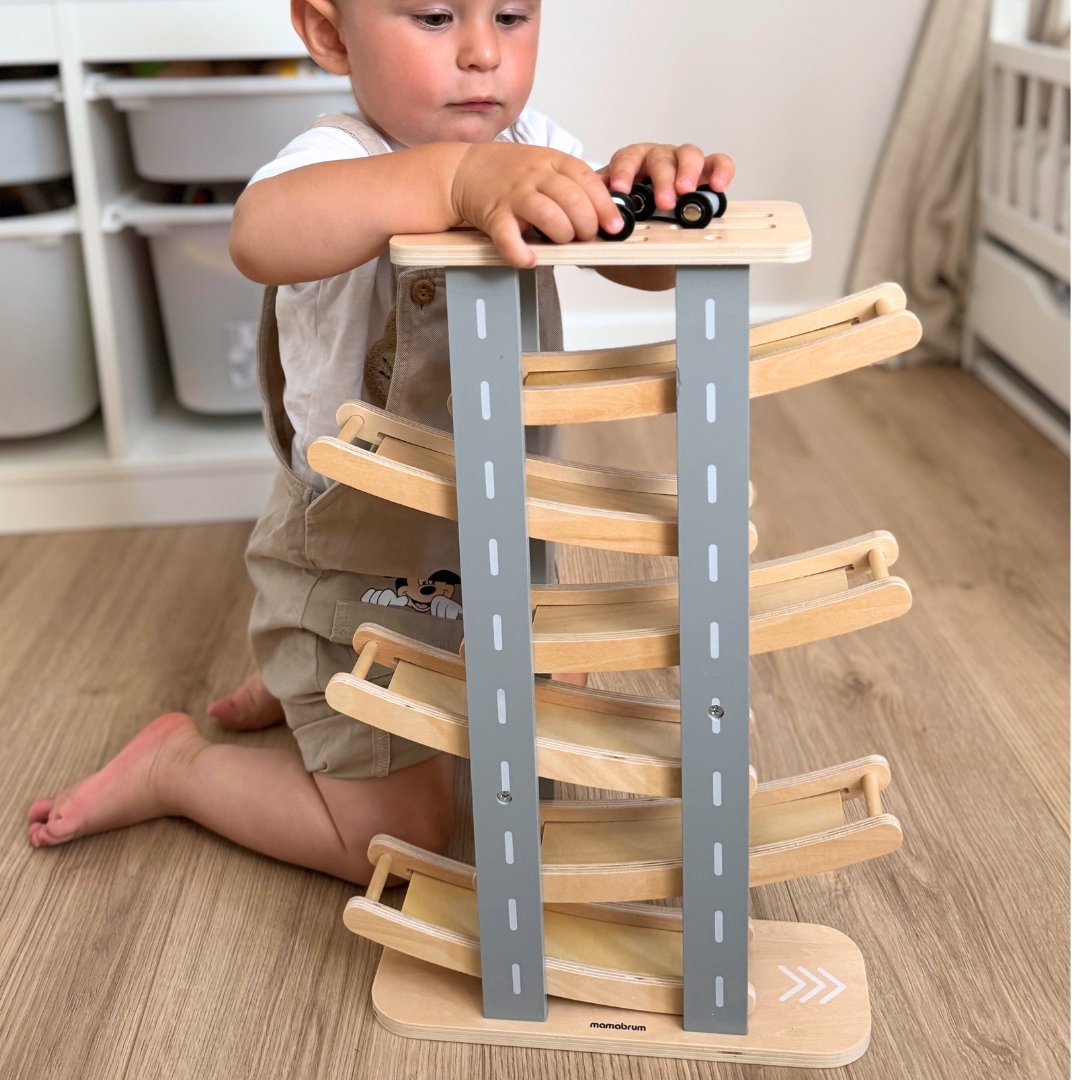 Vispārējas attīstības rotaļlieta, kas ļauj bērnam sekot līdzi mašīnu kustībai un pārbaudīt fizikas likumus praksē.