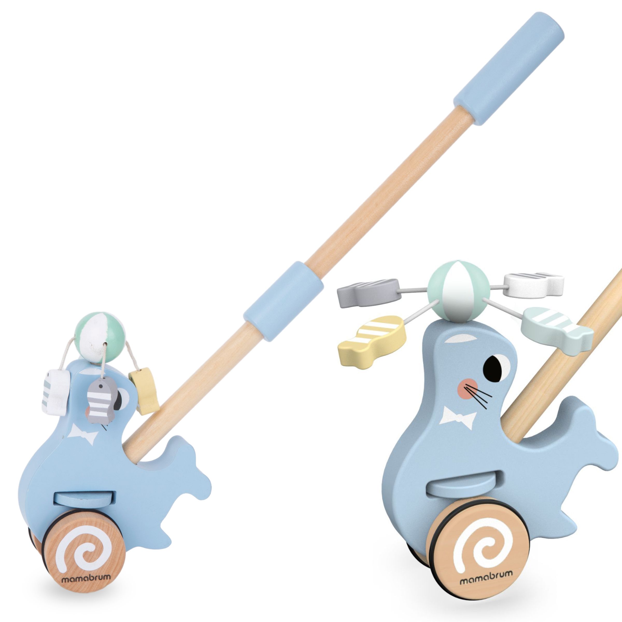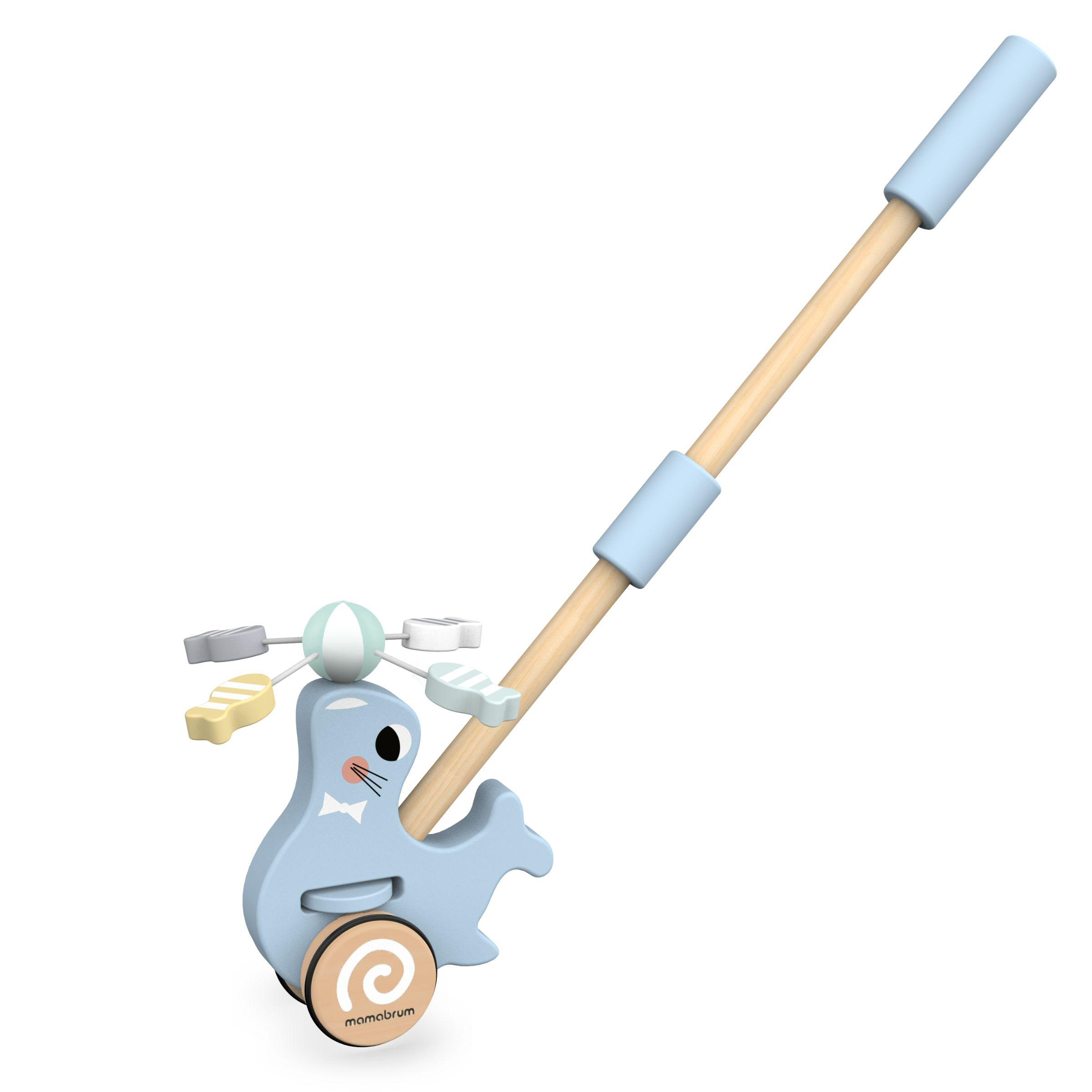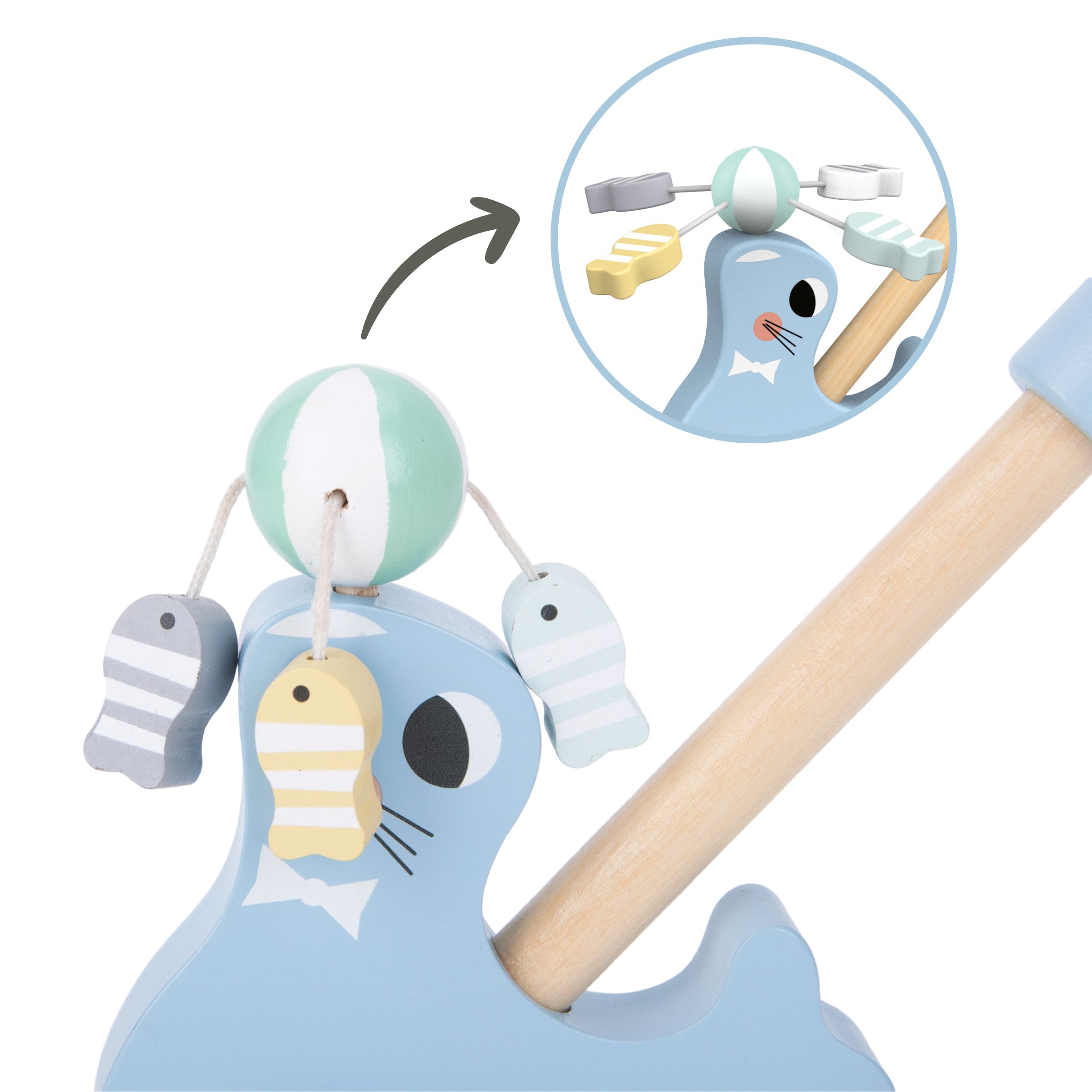 Turklāt rotaļīga ronēna skats uzreiz uzlabos jūsu mazuļa garastāvokli, rosinās iztēli un mudinās būt aktīvam. Koka stūmējs ir pieejams maigi zilā tonī.
