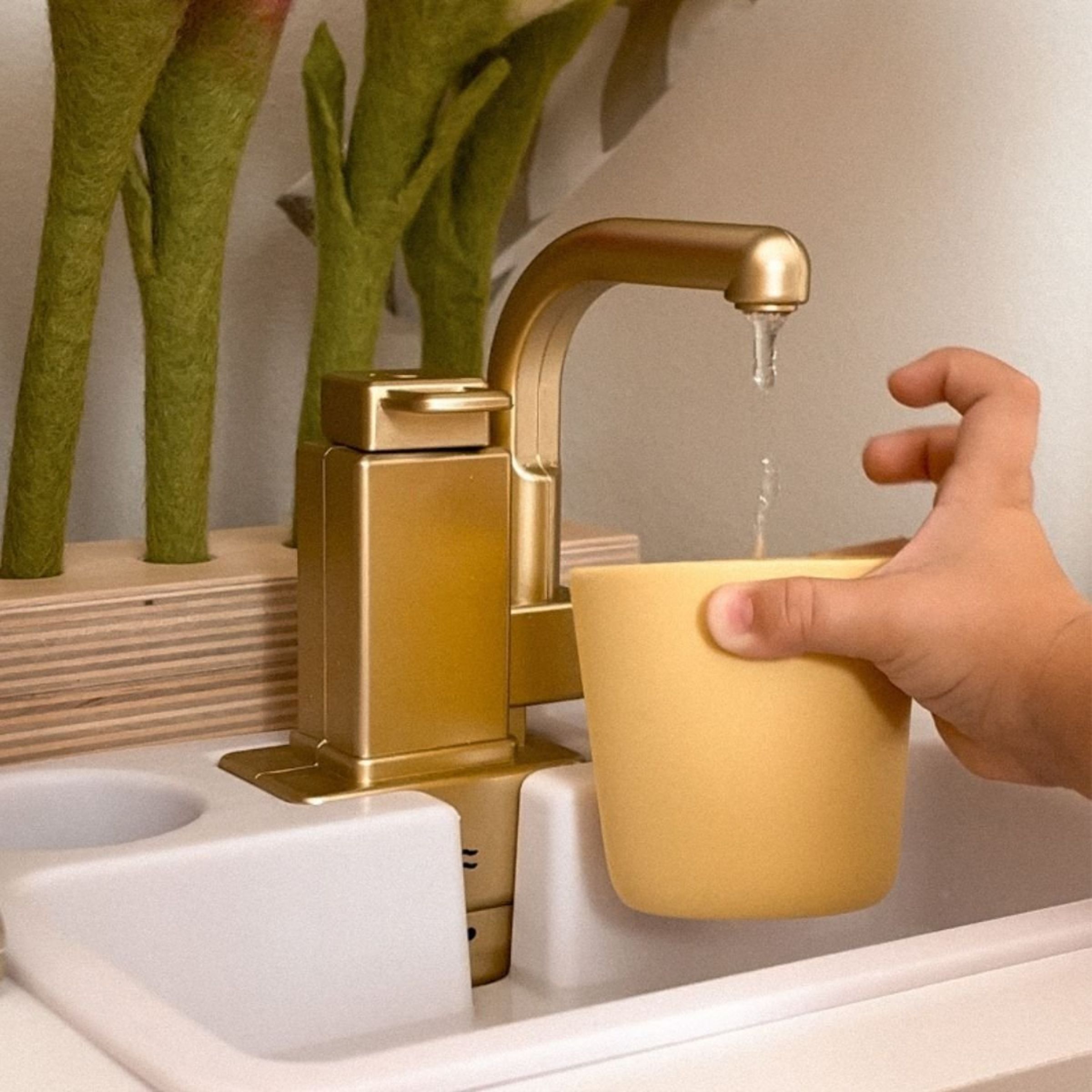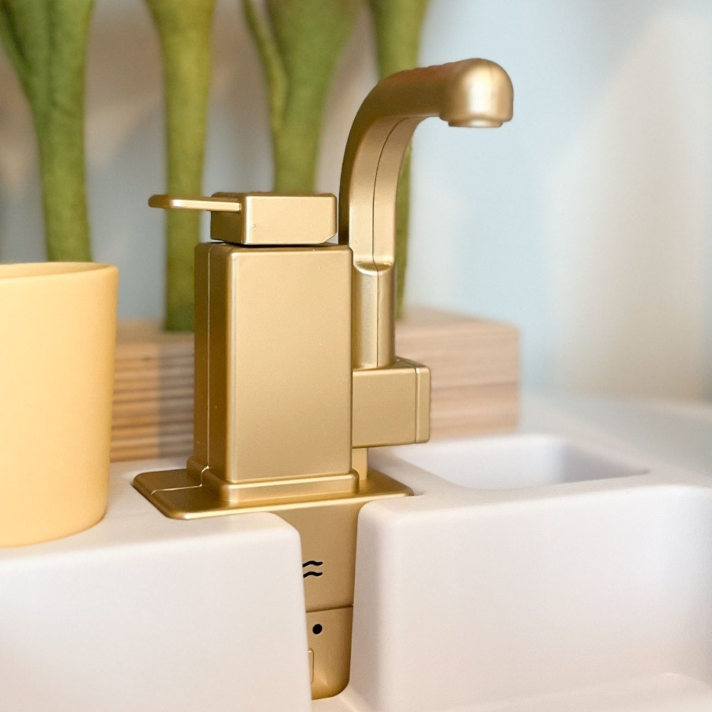 Koka bērnu virtuve ar interaktīvo krānu ir HIT starp mazajiem pavāriem! Krāns, no kura, pagriežot, tek īsts ūdens, sniedz bērniem neparastu jautrību un ļauj spēlēties reālistiski. Mazuļi var izmantot krānu, lai nomazgātu dārzeņus pirms ēdiena gatavošanas vai nomazgātu rokas pēc kulinārijas eksperimentiem. Tā ir lieliska izklaides un izglītošanas kombinācija, lai attīstītu bērna radošumu un praktiskās iemaņas!