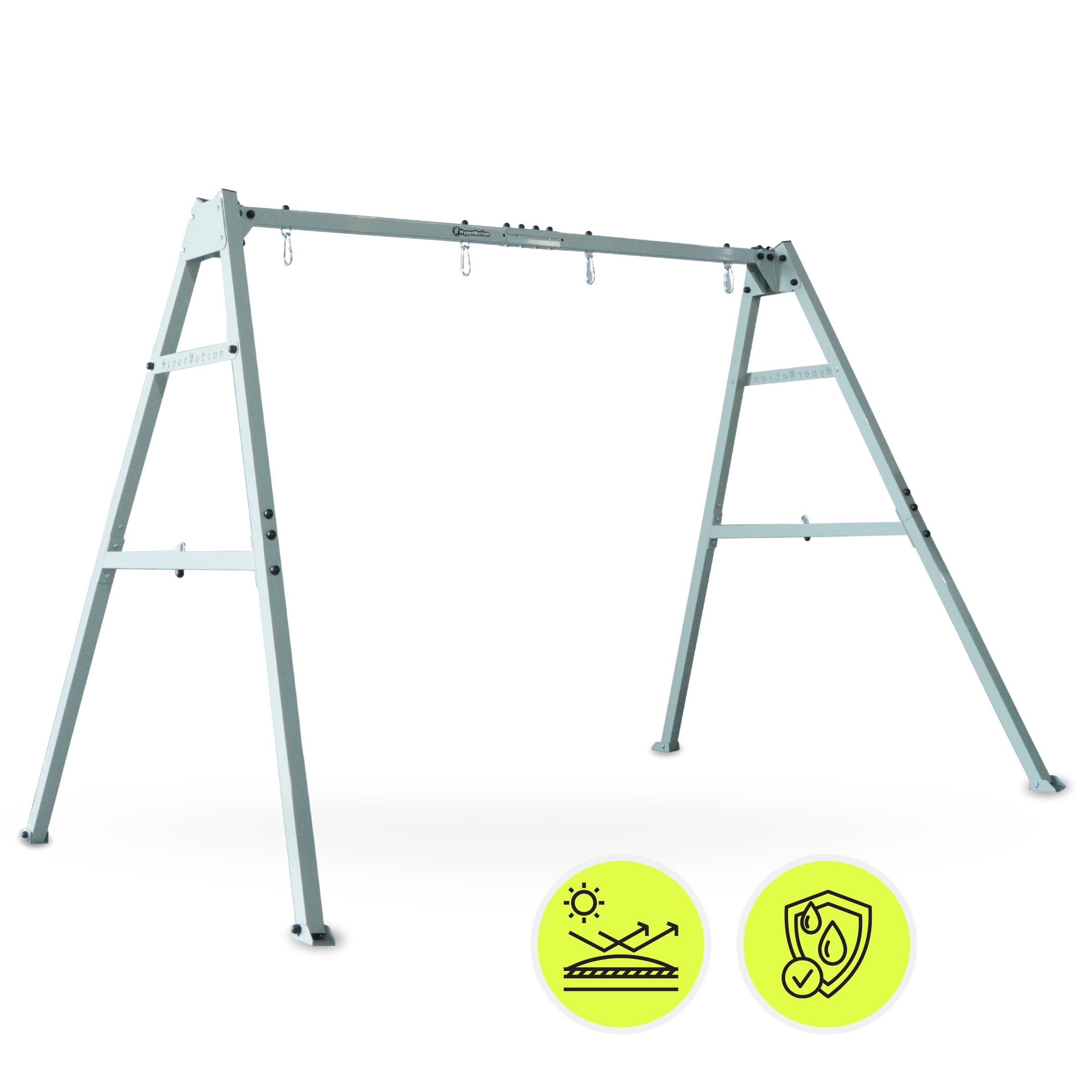 Tērauda šūpoles un šūpuļtīkla statīvs padarīs laika pavadīšanu ārā patīkamāku visai ģimenei! Uzkariniet uz tā atbilstošus piederumus, lai izklaidētu gan bērnus, gan sevi. Pateicoties izturīgajiem āķiem, jūs varat viegli piestiprināt šūpoles vai šūpuļtīklu pie rāmja. Pateicoties mūžīgajam dizainam, rāmis lieliski iederas jūsu dārzā neatkarīgi no tā, kāds ir jūsu dārza stils. Ja nolemsiet iegādāties rāmi, no jums būs atkarīgs, kā izskatīsies bērnu rotaļu zona vai atpūtas stūrītis pieaugušajiem. Galu galā tērauda rāmis var kļūt gan par izklaides centru, gan par klusu atpūtas vietu. Kāds tas būs šodien?