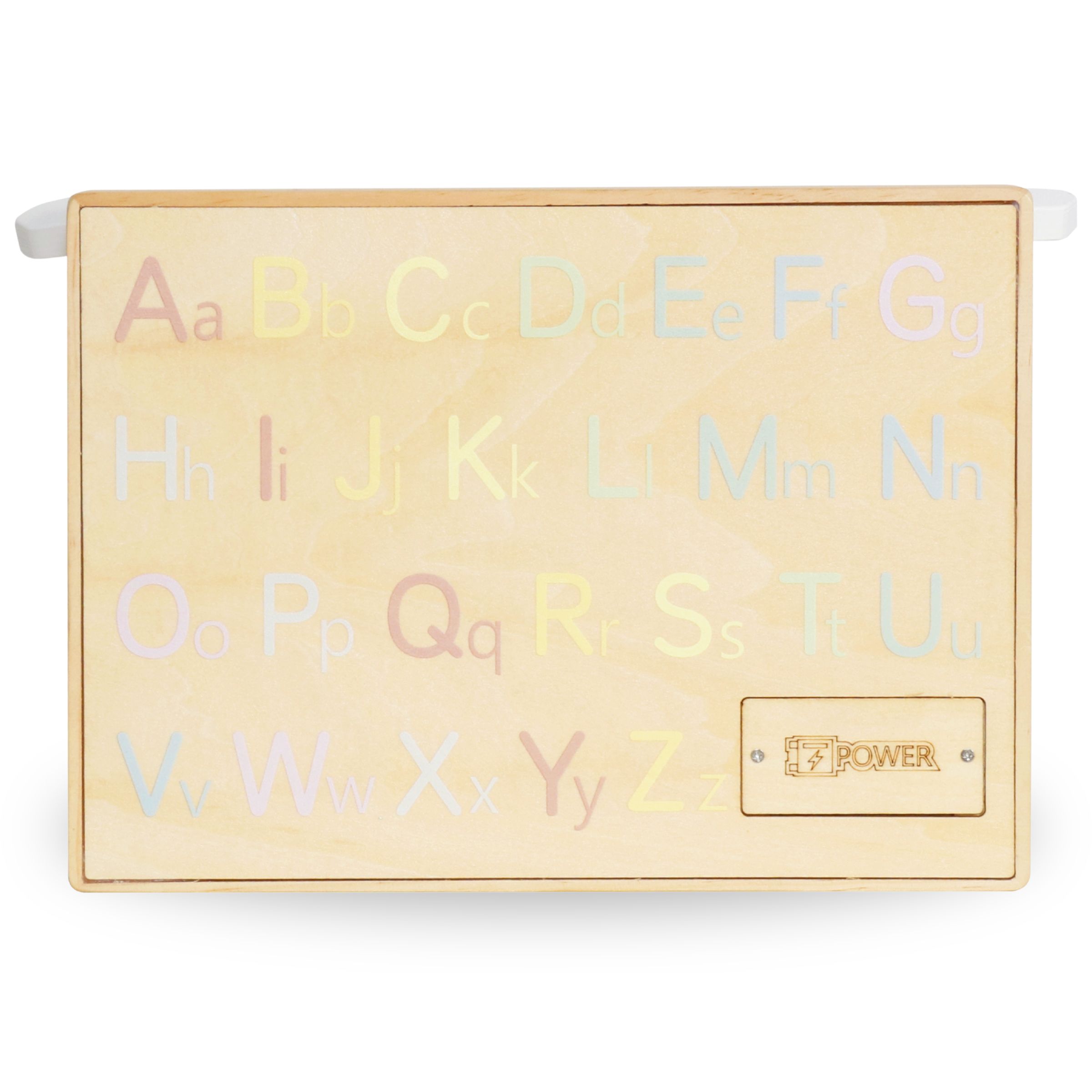 Šī rotaļlieta, kas izstrādāta Montessori garā, valdzina ar savu vienkāršību un vienlaikus funkcionalitāti. Lielais kustīgo elementu skaits mudina mazos bērnus mijiedarboties un nodrošina viņu izklaidi uz ilgu laiku. Tomēr koka tāfele ir ne tikai izklaide, bet arī alfabēta apguve. Uz tāfeles aizmugures ir 26 krāsaini burti.
