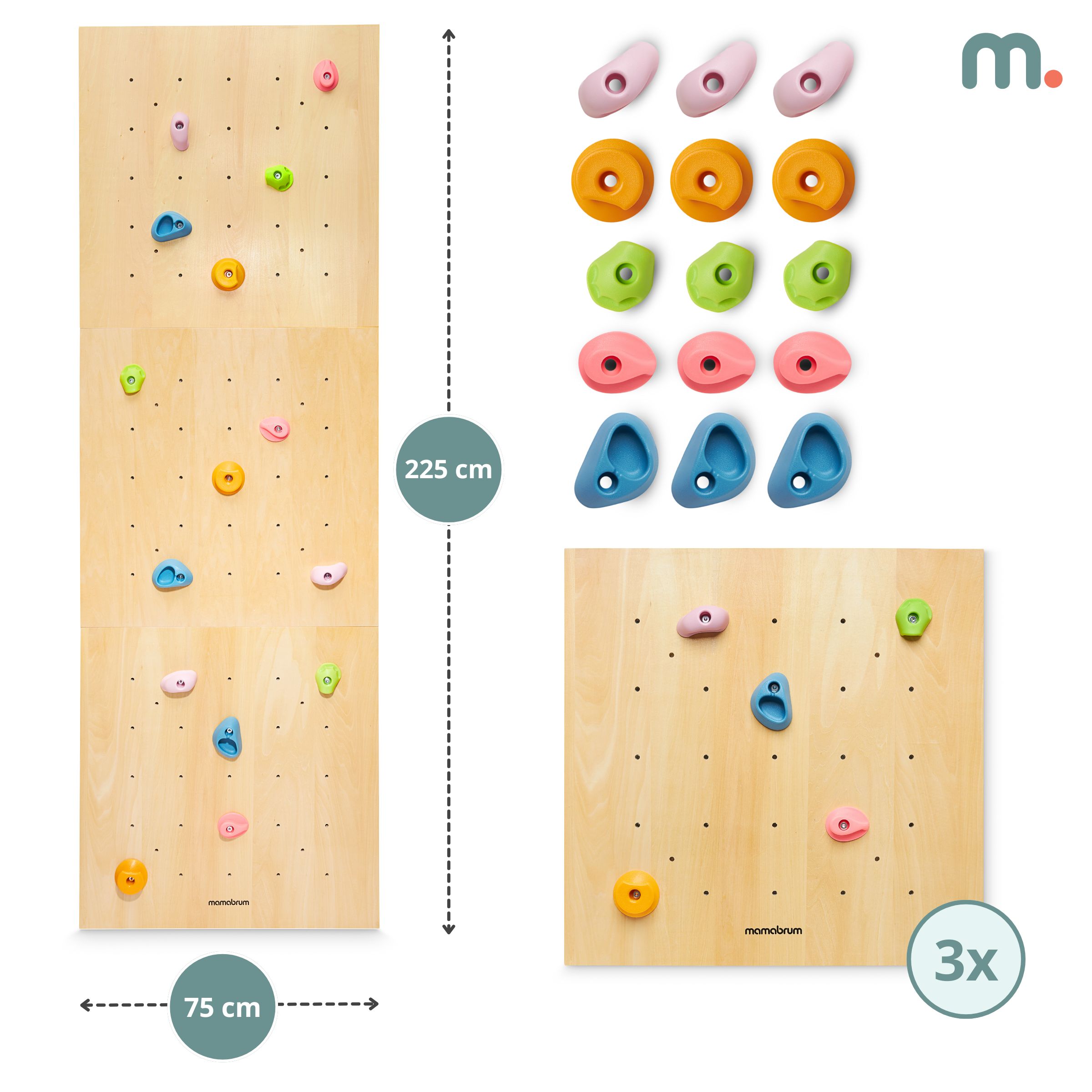 - ietver 3 koka paneļus un 15 krāsainus rokturus