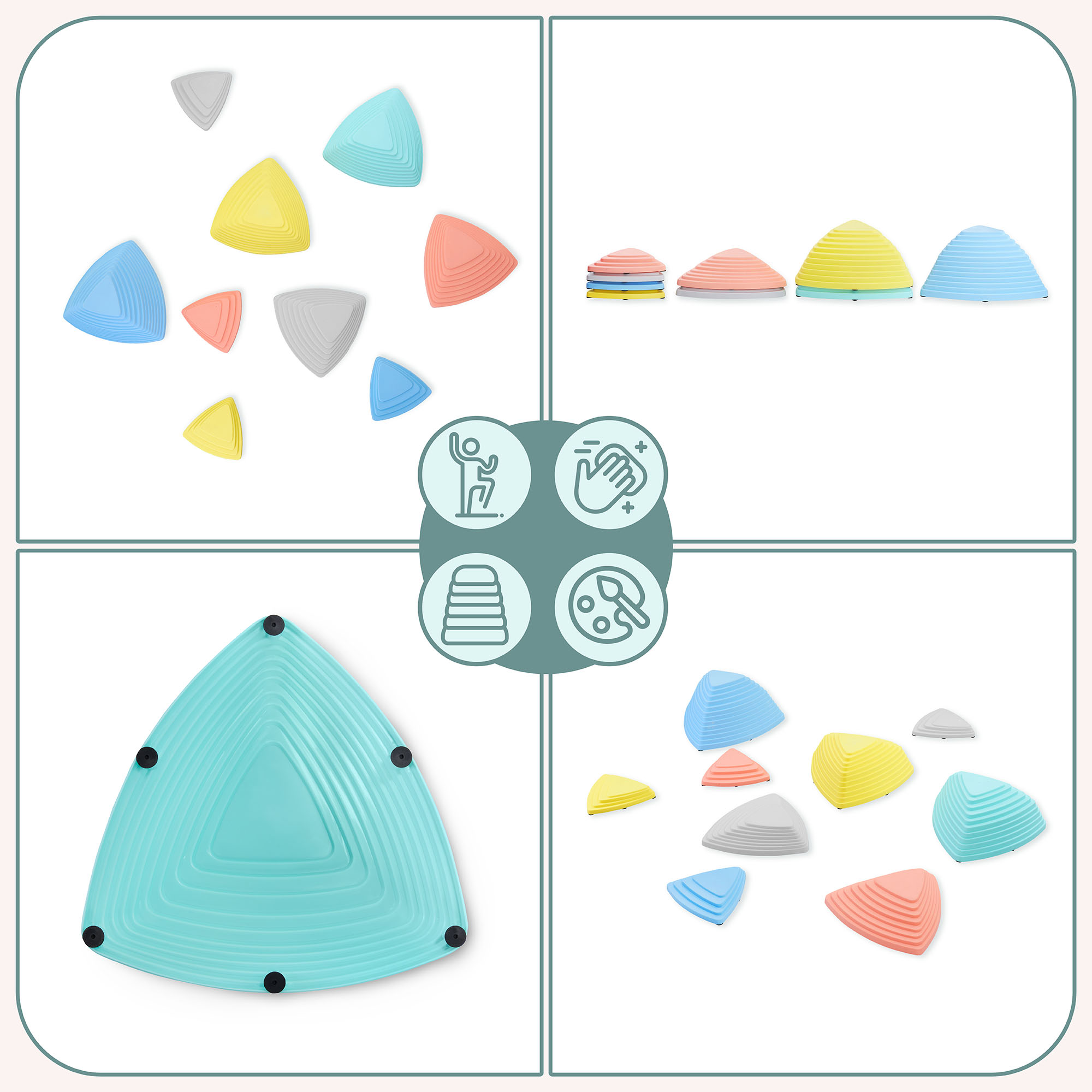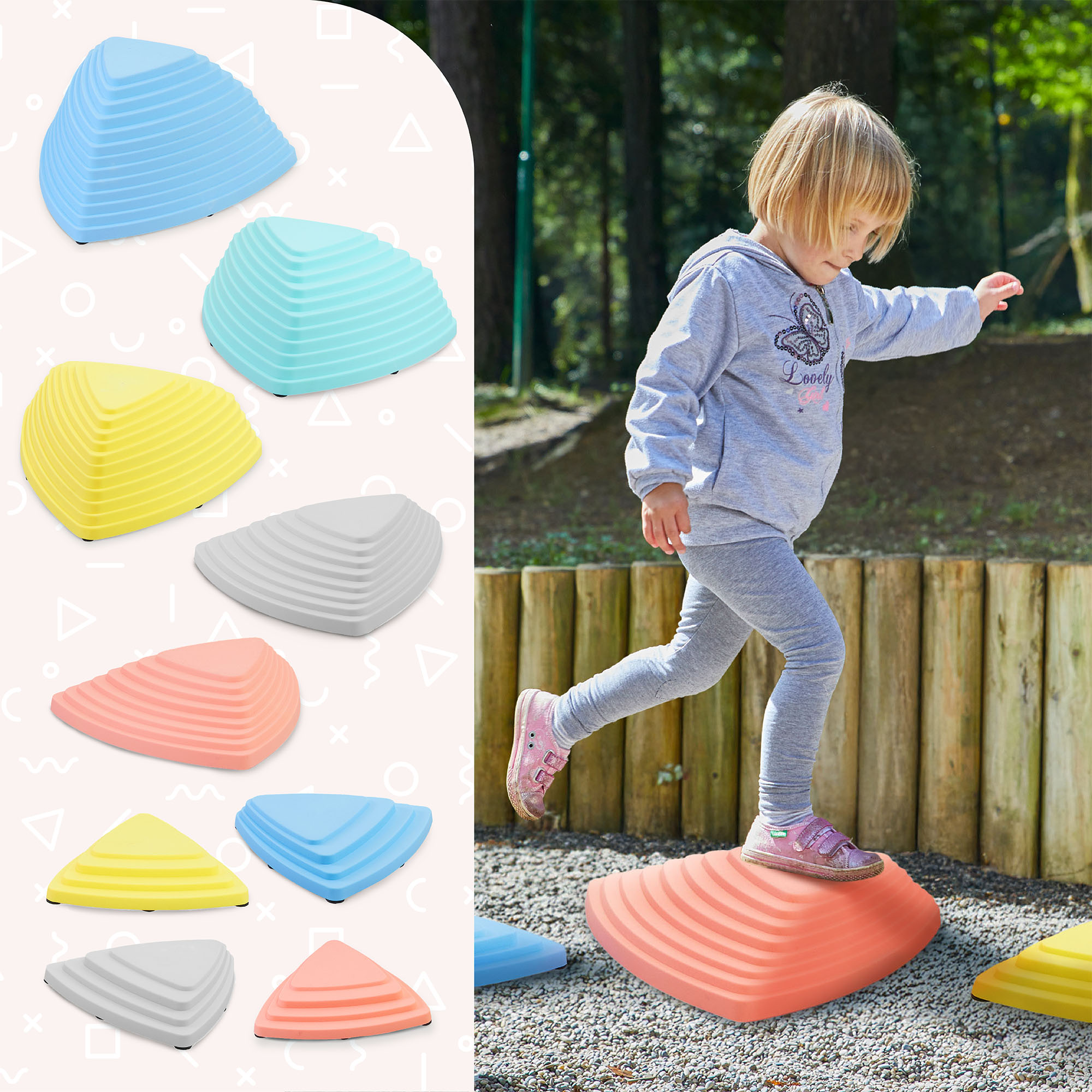 Līdzsvara akmeņu komplekts, kas pieejams pasteļtoņos, ne tikai rotā bērnu istabu, bet galvenokārt nodrošina radošu izklaidi. Akmeņus var izmantot dažādos veidos atkarībā no bērnu pašreizējām vajadzībām un idejām. Līdzsvara akmeņi atbalsta arī mazuļu motorisko attīstību un dod viņiem iespēju vingrināt līdzsvara izjūtu.