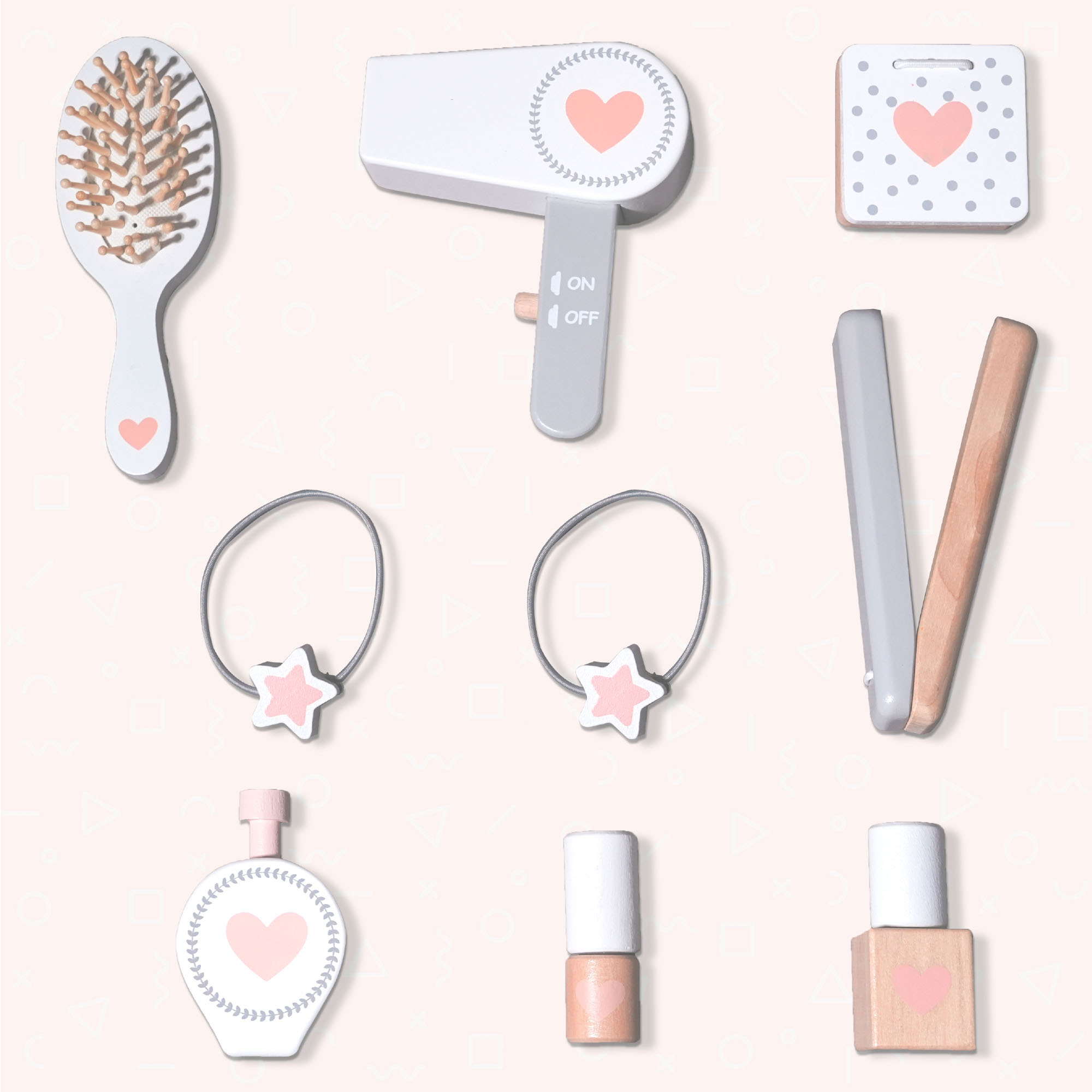 MAMABRUM koka tualetes galdiņš ir unikāla mēbele, kas iepriecinās ikvienu bērnu, kurš sapņo par savu grima un stila stūrīti. Īpaši radīts bērniem, kuriem patīk rotaļāties mājas skaistumkopšanas salonā. Tā izturīgā konstrukcija, skaistais dizains un daudzfunkcionalitāte nozīmē, ka tas būs ne tikai estētisks telpas papildinājums, bet arī vieta ikdienas rituāliem, radošām rotaļām un iztēles attīstīšanai.