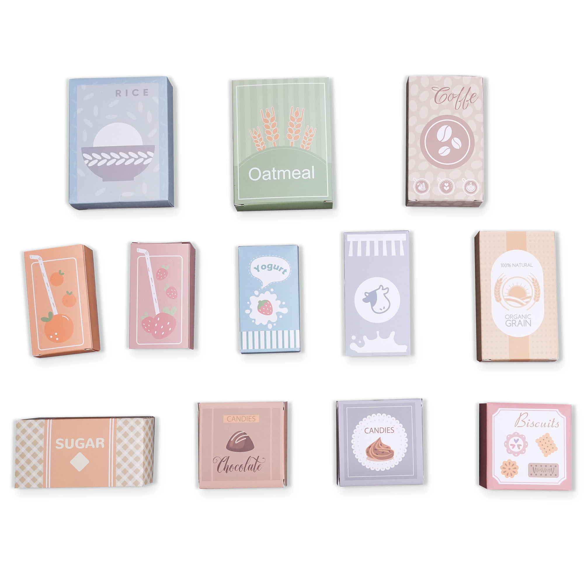 - kastes ar produktiem (piens, jogurts, cukurs, kafija, auzu pārslas, milti, cepumi, konfektes, rīsi, apelsīnu sula, zemeņu sula, ) - 12 gab.