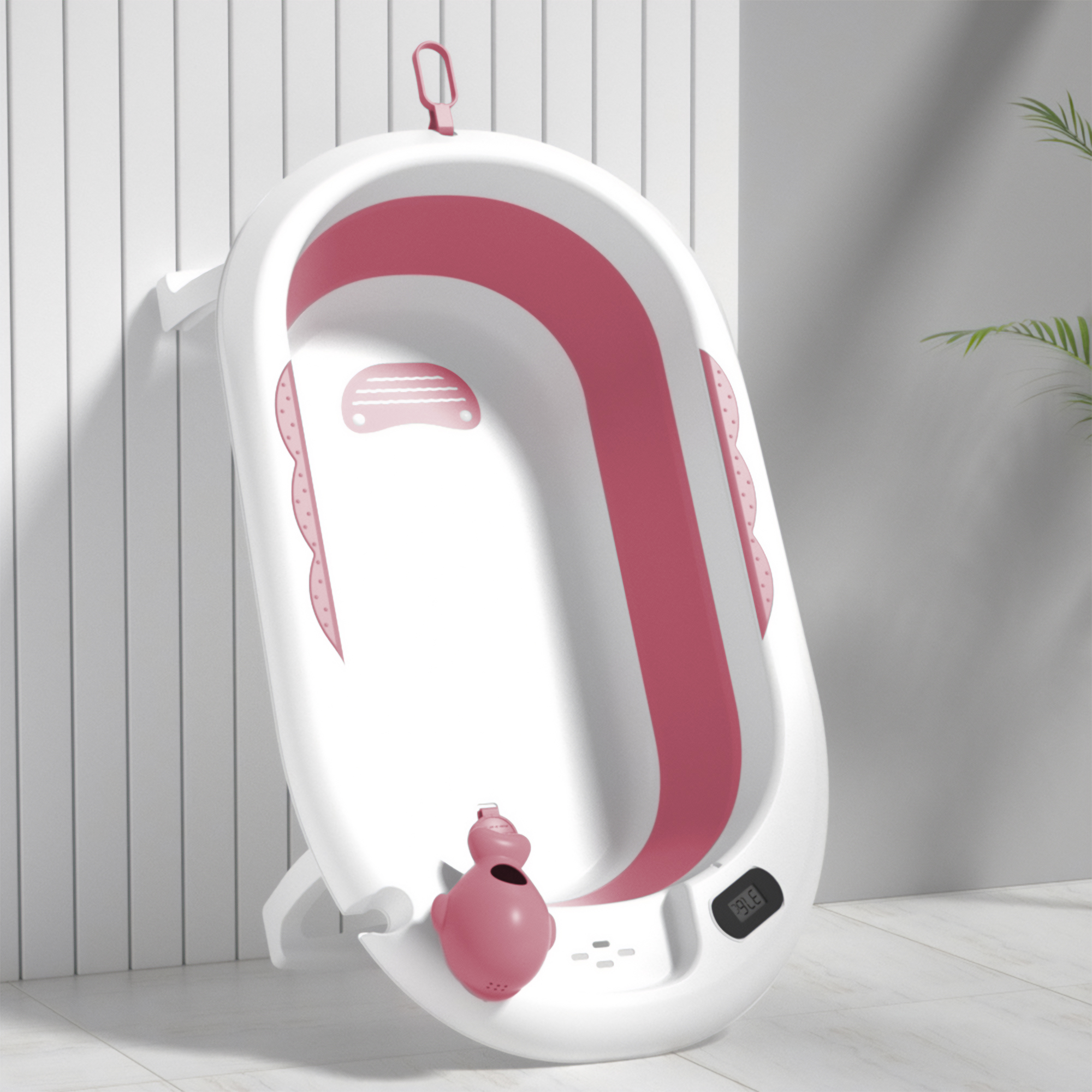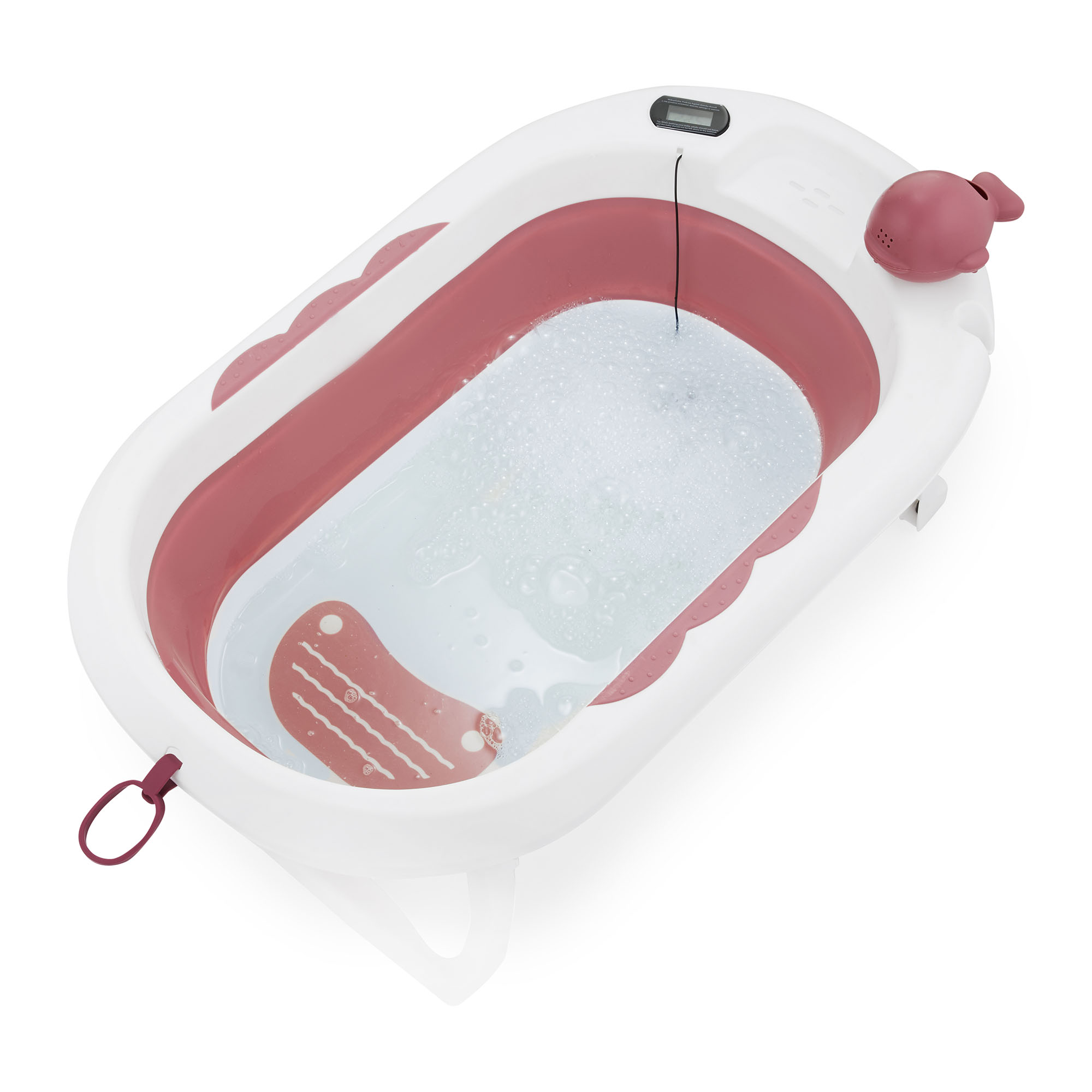 Saliekama vanniņa zīdaiņiem ar termometru, ieliktni un statīvu - krāsa netīri rozā