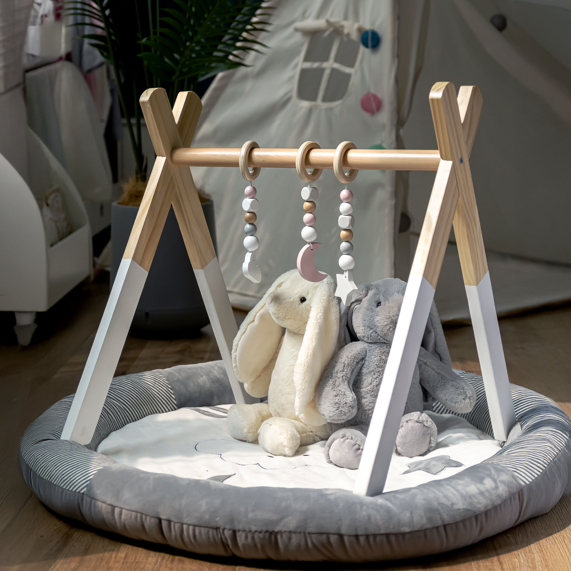 Vai jūsu mazulis tikko sācis iepazīt pasauli? Šis skaisti veidotais koka izglītojošais stends mudina jūsu mazuli kustināt rokas un kājas, satvert, rakt un pētīt apkārtni. BABY GYM ar savu minimālisma dizainu un izturīgo konstrukciju lieliski iederēsies jebkuras bērna istabas interjerā.