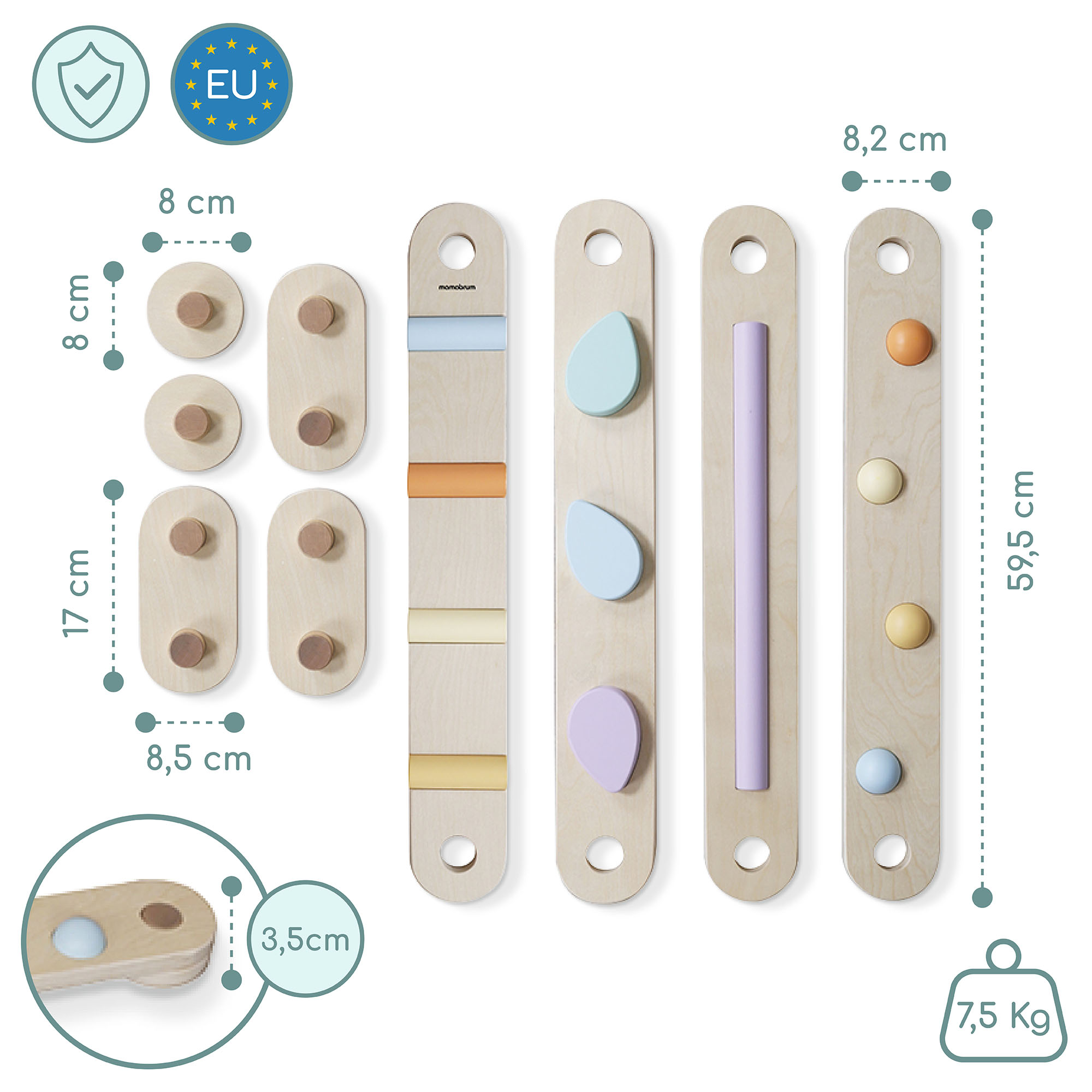 Koka sensoro celiņš ir unikāla rotaļlieta, kas jebkuru interjeru pārvērtīs par kustību, jautrības un mācīšanās pilnu telpu. Pateicoties iespējai to izkārtot dažādās formās - kvadrātveida, zigzaga vai atklātā celiņā - bērns iegūst bezgalīgas iespējas spēlēties, vienlaikus attīstot līdzsvaru, koordināciju un iztēli. Krāsainie sensorie elementi interesantās formās vēl vairāk stimulē maņas un veicina aktīvu rotaļu.