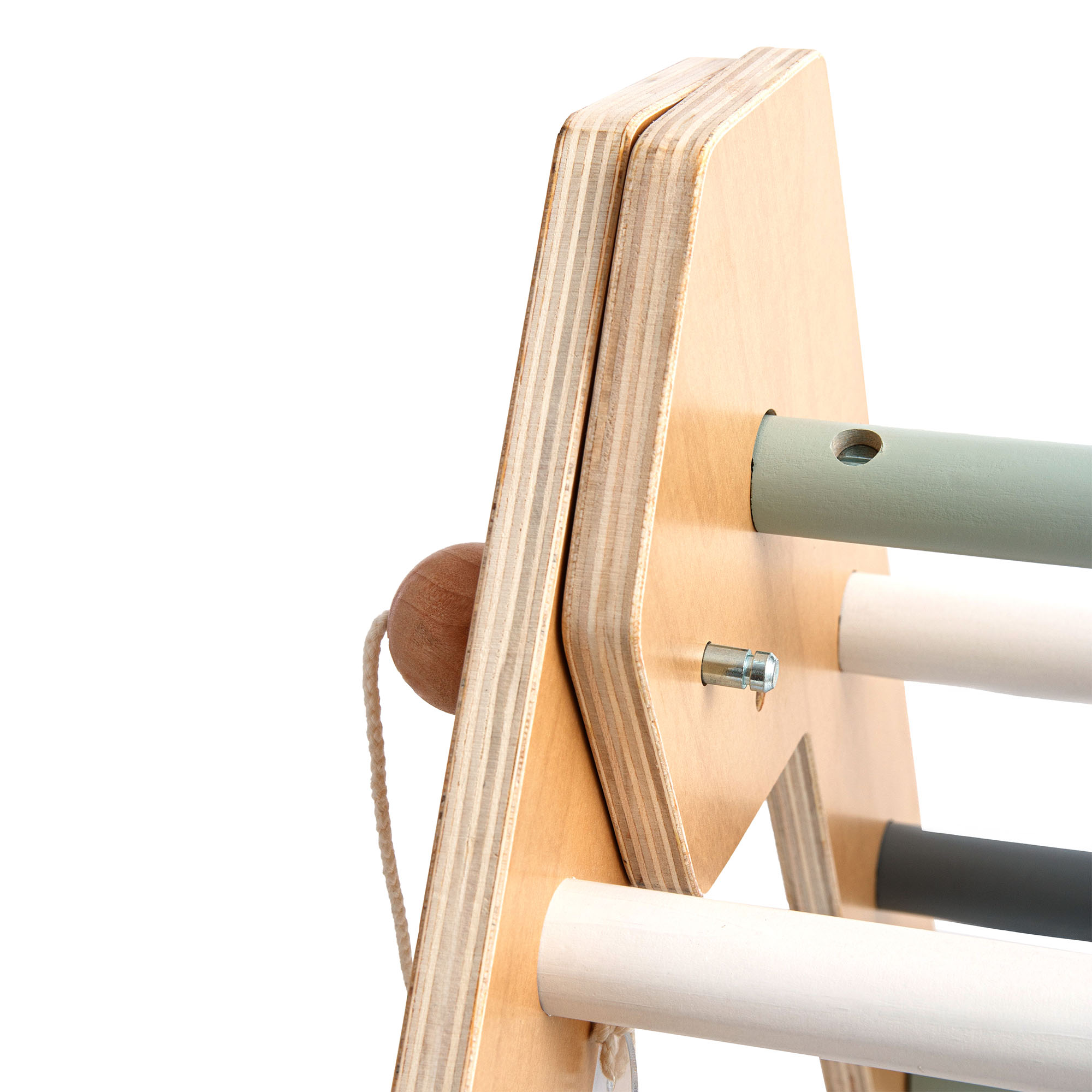 Stabilā konstrukcija ļauj kāpt, saglabāt līdzsvaru un attīstīt visa ķermeņa muskuļus. Salokāmās malas atvieglo trīsstūra uzglabāšanu vai transportēšanu, ko novērtē vecāki ar ierobežotu vietu. Šis ir klasisks Montessori metodes elements, kas atbalsta bērna motorisko attīstību un neatkarību.