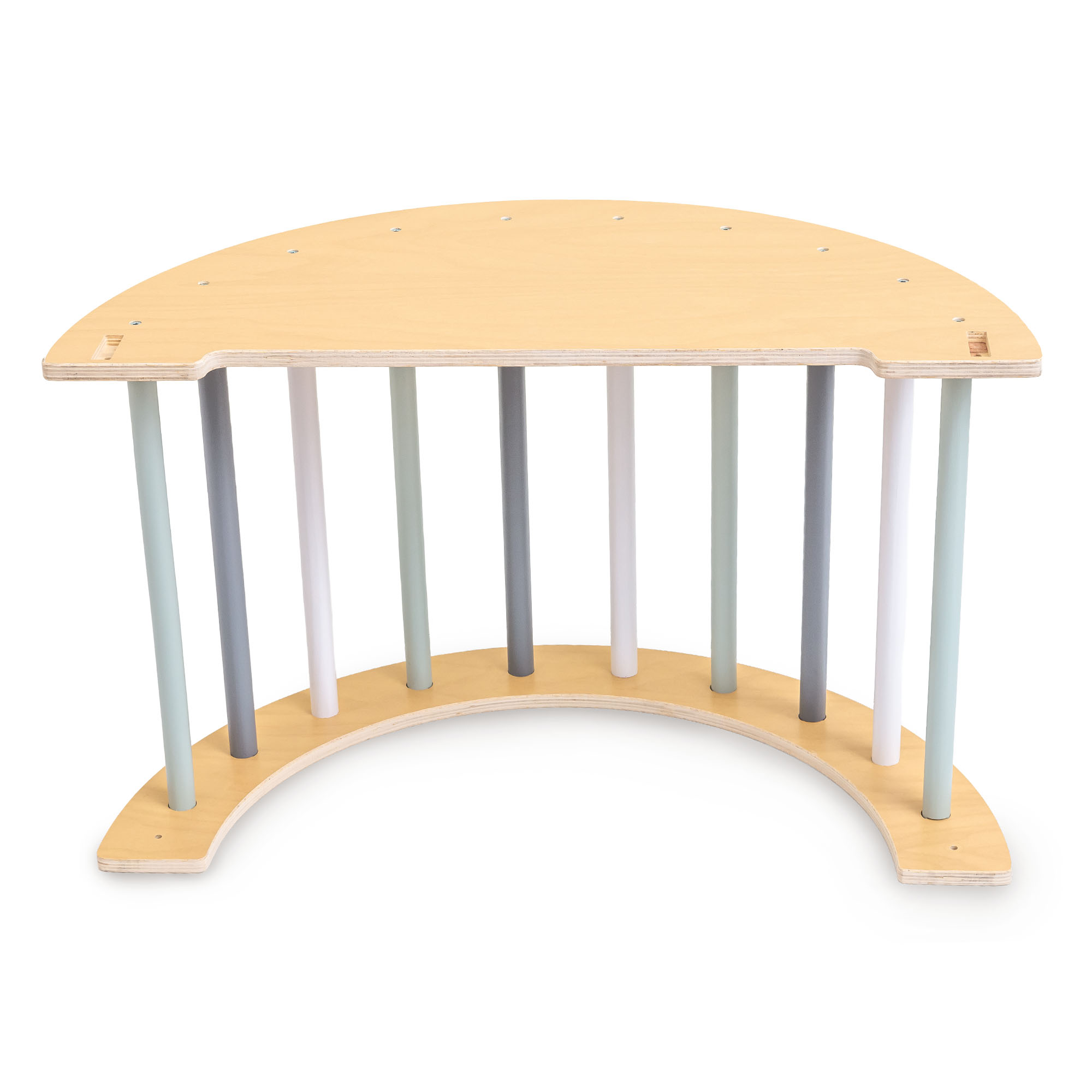 Arka veicina kāpšanu, līdzsvara noturēšanu un šķēršļu joslu pārvarēšanu . Vienkārši apgrieziet arku otrādi un ievietojiet iekšpusē spilvenu vai segu, lai izveidotu drošu šūpuļkrēslu , kas ir ideāli piemērots klusai un nomierinošai spēlēšanai. Arku var izmantot arī kā galdu , kas ir ideāli piemērots zīmēšanai, spēlēšanai ar klucīšiem vai grāmatu lasīšanai.
